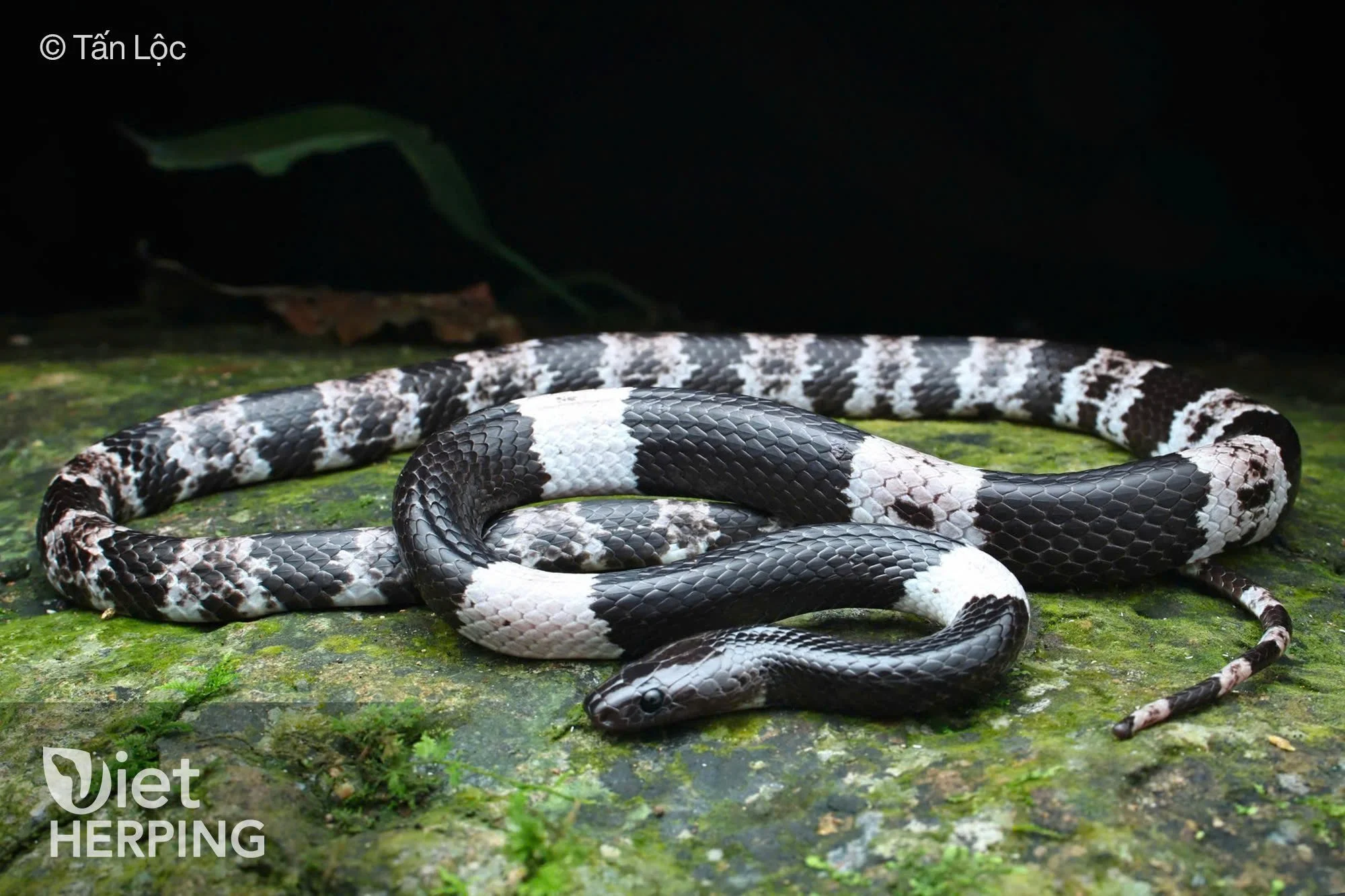 The Banded Wolf Snake (Lycodon fasciatus) captivates with its striking black and white bands that ripple elegantly across its slender body. Often found stealthily navigating the forest floor and low shrubs in national parks, this elusive snake enchants herpers with its graceful movements and unique patterning. Spotting this rare beauty offers a memorable glimpse into Vietnam’s rich reptilian diversity.