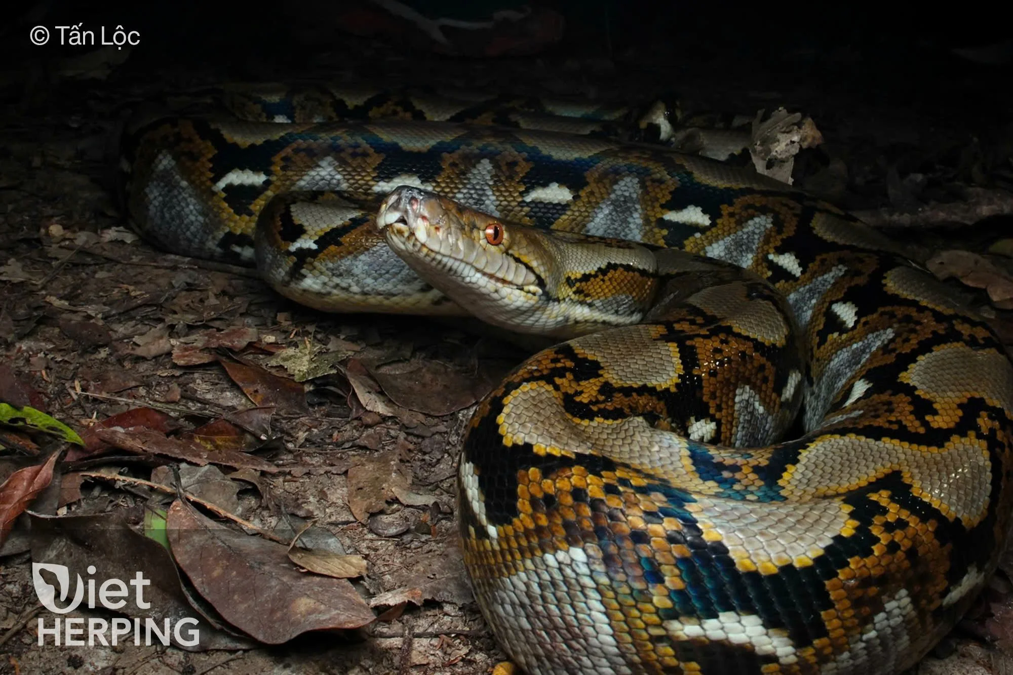 This is a magnificent giant known for its intricate, geometric skin patterns that shimmer in the wild. Spotting this powerful yet graceful serpent in its natural habitat is a breathtaking experience. Watching it move silently through dense foliage highlights the elegance and raw beauty of Vietnam’s reptile world, making it a true highlight for any herping adventure.