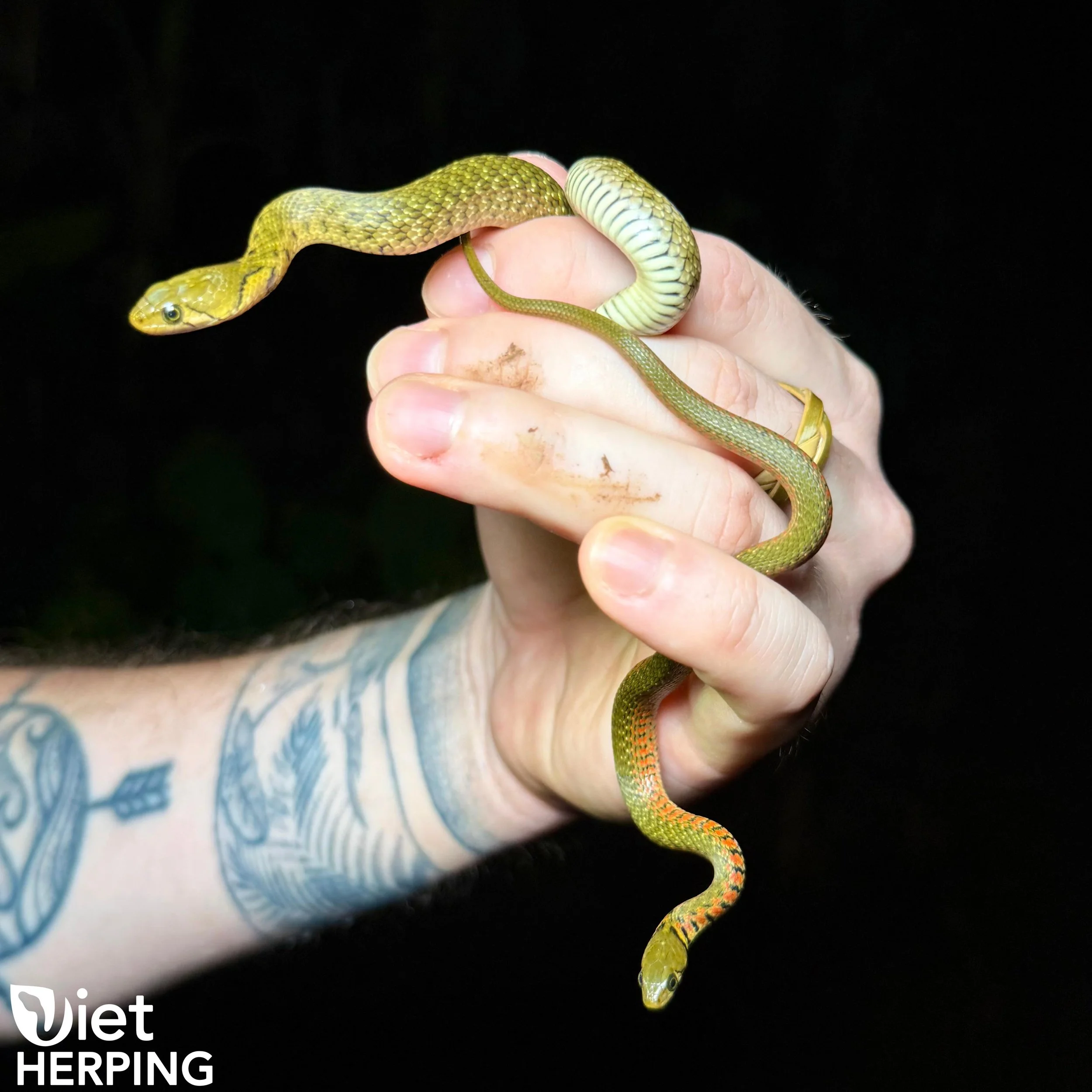 On July 15, 2025, our Hanoi herping tour revealed a captivating glimpse into the region's rich reptilian diversity. Among the highlights was the formidable Naja atra, commonly known as the Chinese cobra, whose commanding presence never fails to impress. We also encountered the elusive Indo-Chinese rat snake (Ptyas korros), elegantly navigating its environment with remarkable agility. The tour's standout discovery was the Striped Kukri Snake (Oligodon taeniatus), whose distinctive patterning and unique behavior made it an unforgettable sighting, showcasing the intricate biodiversity that northern Vietnam sustains. This tour exemplified the wonder and excitement of exploring Vietnam’s herpetofauna up close.